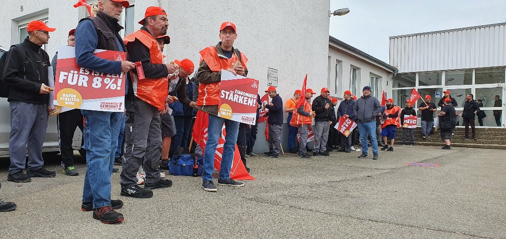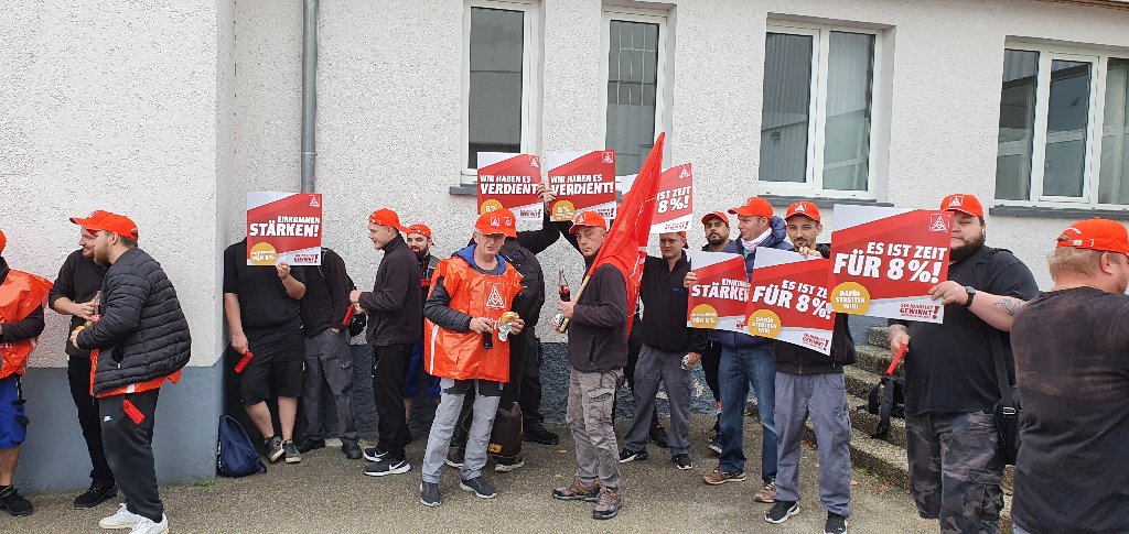 Die IG Metall fordert in der aktuellen Tarifrunde ein Entgelt-Volumen von 8 Prozent bei 12 Monaten Laufzeit, das zur Stabilisierung der Kaufkraft eingesetzt werden soll. In den bisherigen drei Verhandlungsrunden wurde keine Annäherung erreicht.