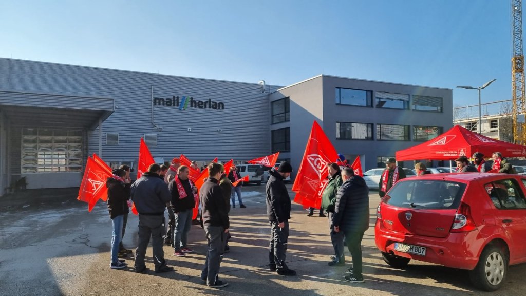 Heute haben die Beschäftigten der Firma Mall + Herlan GmbH in Neuhausen ob Eck einen ersten Warnstreik durchgeführt.