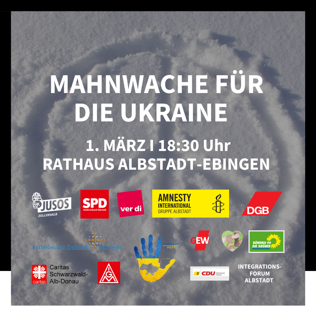 Mahnwache für die Urkraine in Albstadt-Ebingen am 01.03.2023 ab 18:30 Uhr