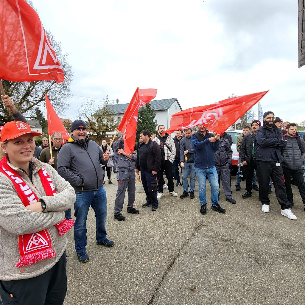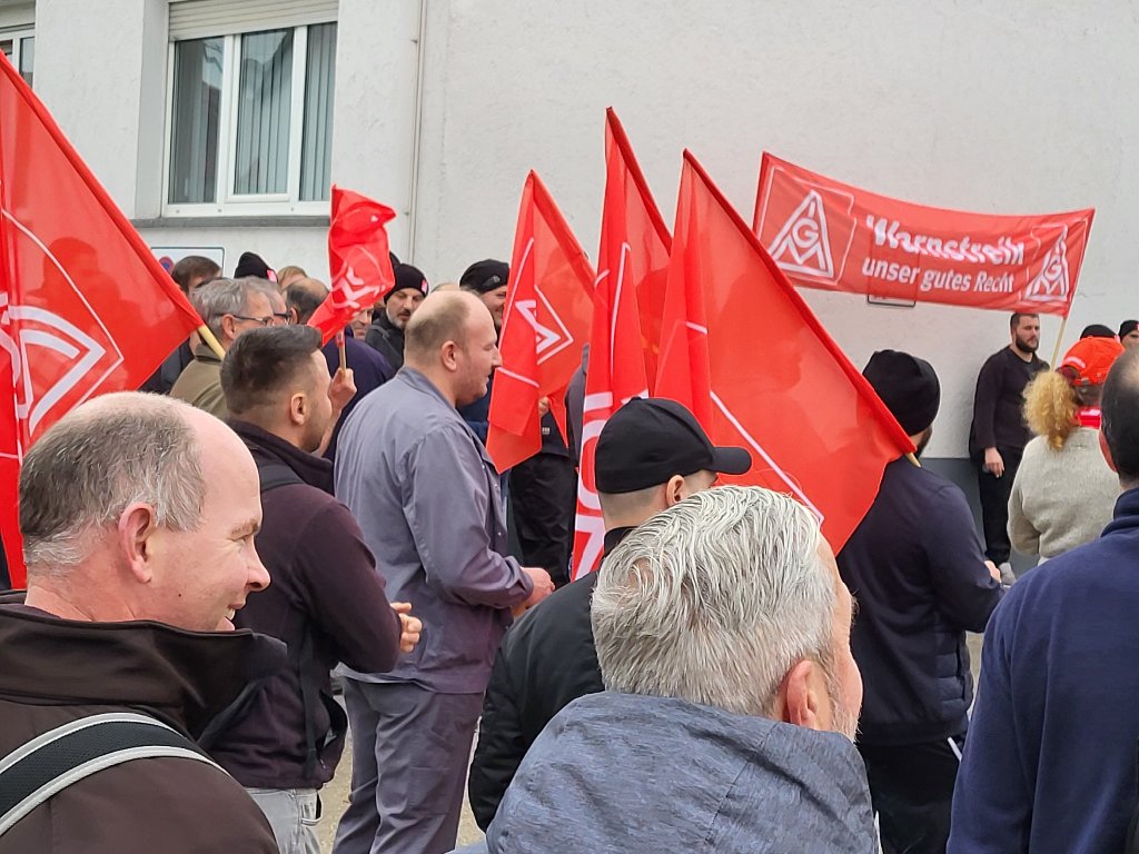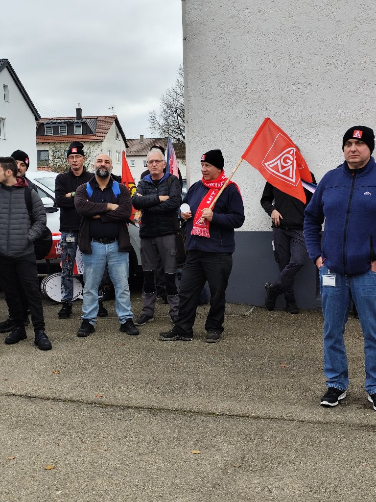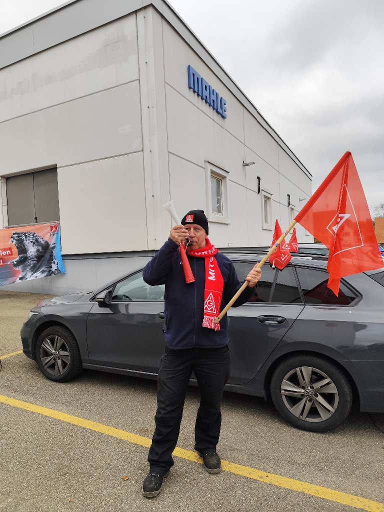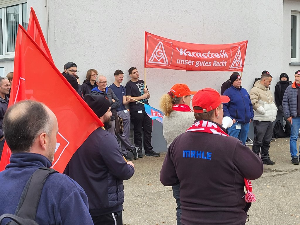 Timo Münsch, Mitglied der Delegiertenversammlung IGM Albstadt und Betriebsratsvorsitzender, war von seinen Kolleginnen und Kollegen umringt, als er unterstrich, dass sich alle ein ernstzunehmendes und wertschätzendes Angebot der Arbeitgeber erwarten. Solidarisch werden wir dies weiter einfordern! Da waren sich am 06.11.2024 auch die Beschäftigten in Leibertingen bei Mahle einig.
