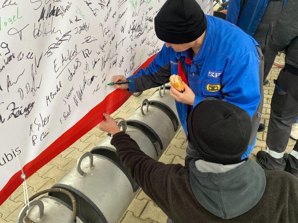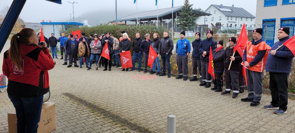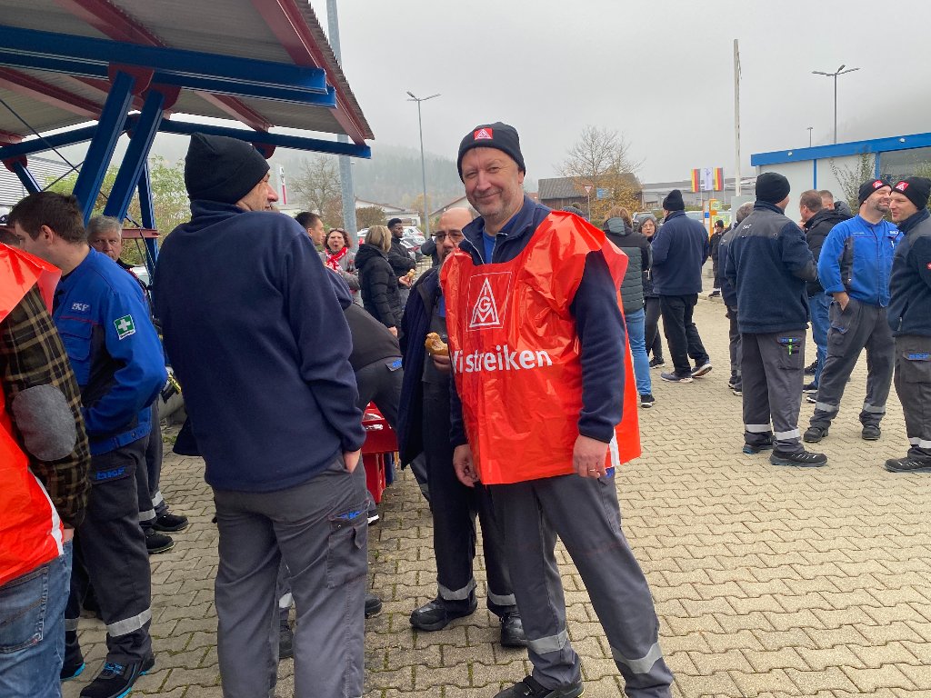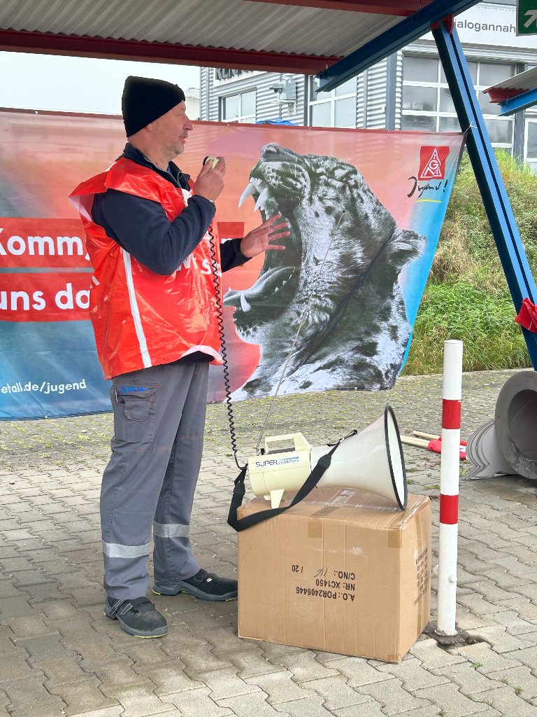 Vor dem Werk machten die Beschäftigten ihren Unmut über das unzureichende Angebot der Arbeitgeber kund. Dirk Perske: "Wir fordern 7 % mehr Lohn, weil wir es brauchen und verdienen. Alles ist teurer geworden. Jetzt wird unsere