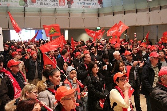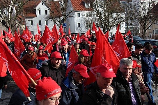 Walter Wadehn und Michael Föst, erster und zweiter Bevollmächtigter der IG Metall Albstadt, sowie Martin Kunzmann, der Landesvorsitzende des DGB, bekundeten die Hoffnung, dass die Arbeitgeber in der parallel angelaufenen vierten Verhandlungsrunde noch "zur Vernunft kommen" würden.Letzte Änderung: 27.03.2018
