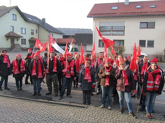 Georg Faigle von der IG Metall Albstadt prangerte vor dem Fabrikgebäude das Angebot der Arbeitgeber an. Er rief den Beschäftigten zu: "Dieses Almosen lehnen wir mit Entschiedenheit ab. Denn wenn die Metall- und Elektroindustrie gut da steht und die Renditen auf dem höchsten Stand seit zehn Jahren sind, müssen die Beschäftigten einen gerechten Anteil erhalten". Faigle erwartet von den Arbeitgebern an der morgen in Böblingen stattfindenden dritten Verhandlungsrunde ein deutlich verbessertes Angebot auf eine Entgelterhöhung mit dem Einstieg in ernsthafte Verhandlungen um die Arbeitszeit.