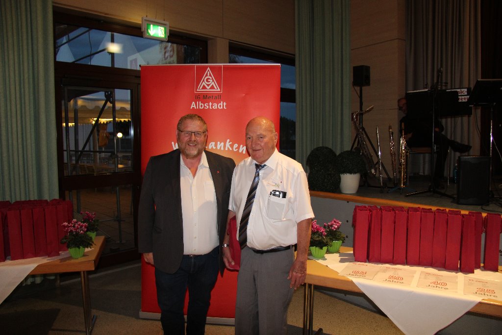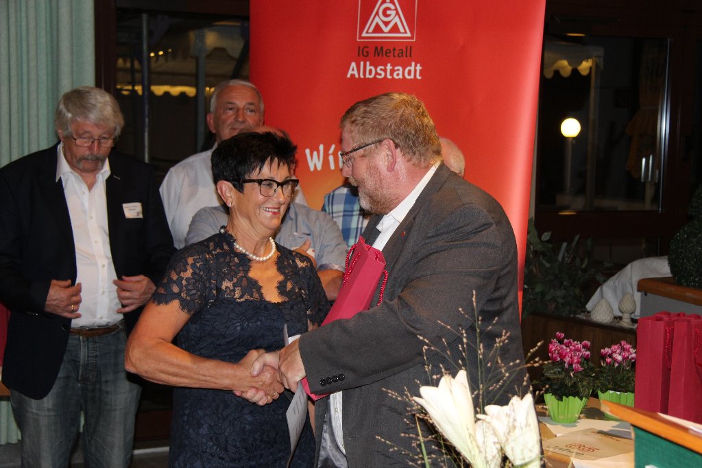 Weiterhin würdigte Michael Föst, dass die IG Metall Albstadt insgesamt 13.390 Jahre Mitgliedschaft feiert, von denen 1.815 Jahre anwesend waren. "Jeder und jede Einzelne von Euch ist Teil dieses Erfolges, wir alle sind die IG Metall. Bei vielen war es die Lehre/ heute Ausbildung, die den Anstoß zur Mitgliedschaft gab. Vielleicht aber war es auch ein Konflikt am Arbeitsplatz, oder der Wille, am Erfolg von Tarifstreitigkeiten teilzuhaben. Die Einsicht, gemeinsam bessere Chancen zu haben als allein, weil die Arbeiterbewegung immer nur dann stark ist, wenn sich aus gemeinsamen Interessen ein Kollektiv bildet. Ich danke Euch allen sehr für Eure jahrzehntelange Treue zu unserer IG Metall."