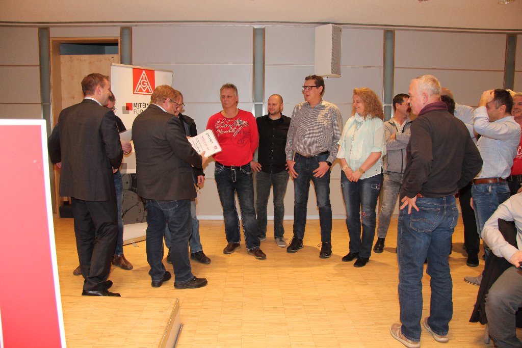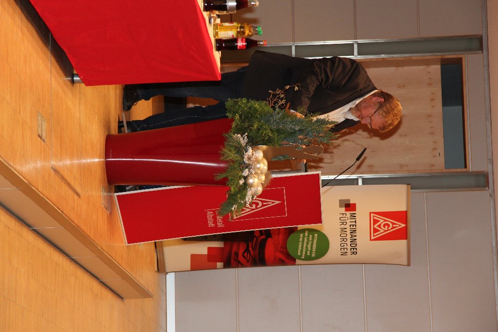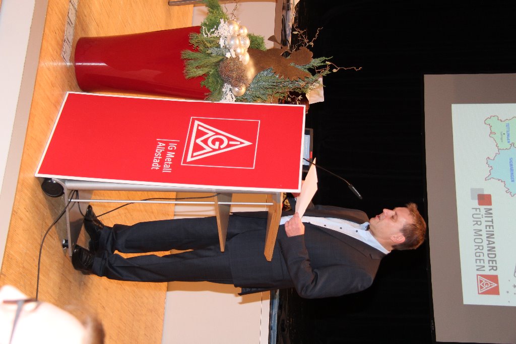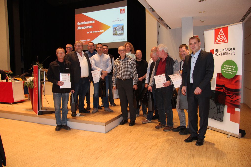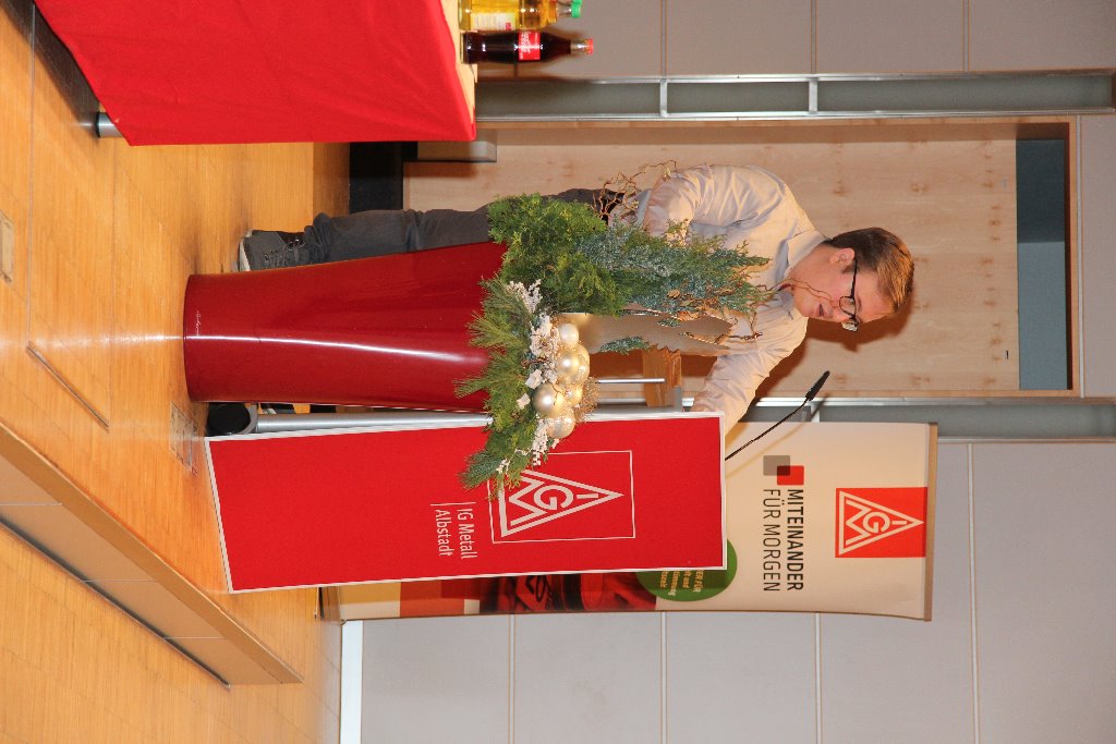 Michael Föst, Geschäftsführer der IG Metall Albstadt, lobte die Anwesenden für ihre hervorragende Mitgliederwerbung, insgesamt wurden über 1.100 neue Mitglieder für die IG Metall Albstadt geworben. "2018 ist damit das drittbeste Jahr der letzten Dekade" führte Michael Föst aus. "Danke, an euch alle! Danke! Für dieses tolle Ergebnis."