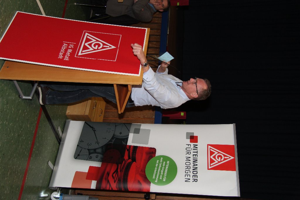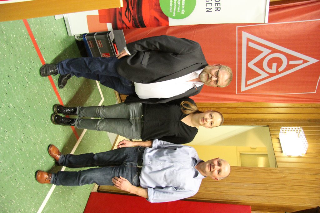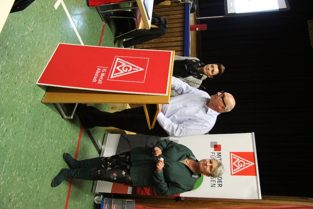 Michael Föst, erster Bevollmächtigter der IG Metall Albstadt - Carolin Niederauer, stellvertretende Betriebsratsvorsitzende der Firma Mettler-Toledo GmbH, Albstadt - und Manfred Dufner, Betriebsratsvorsitzender der Firma Gühring KG, Albstadt; - wurden von der Versammlung als Delegierte zum Gewerkschaftstag 2019 bestätigt.