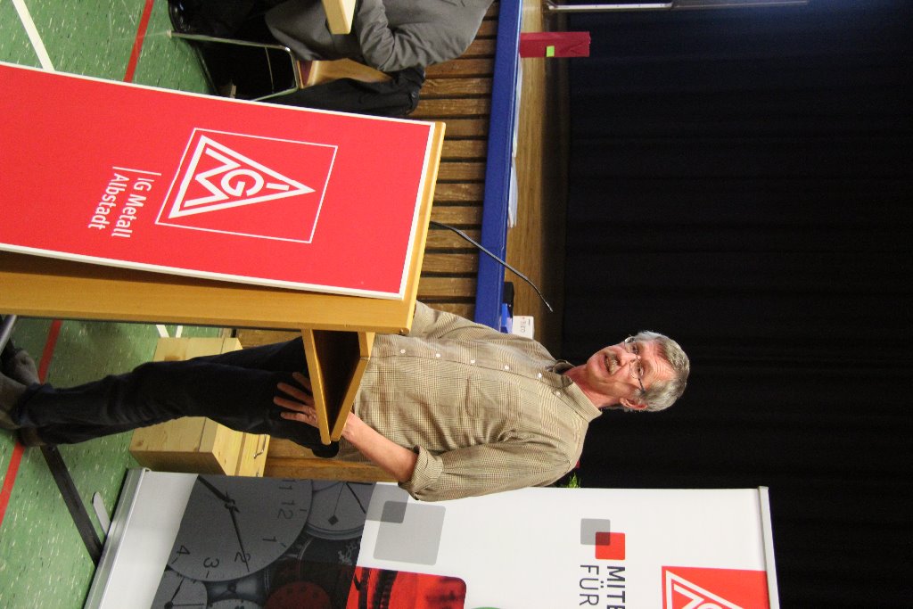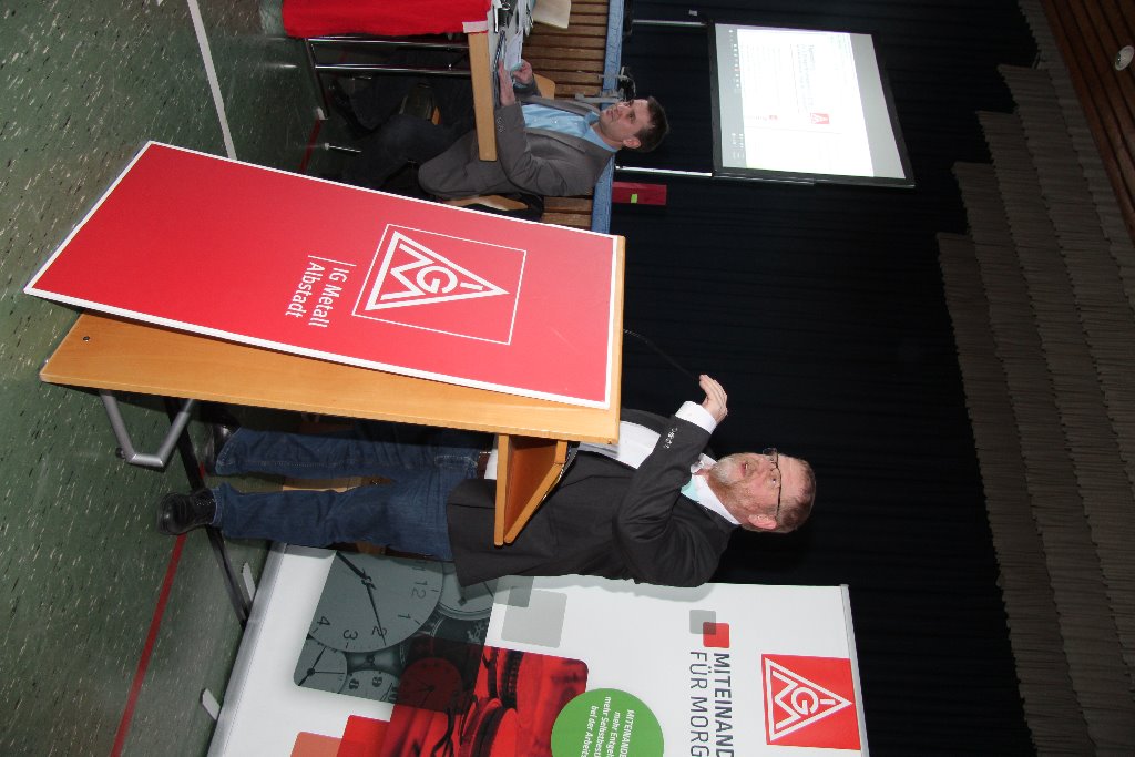 Christian Steffen macht aber auch darauf aufmerksam, dass die IG-Metall sich überlegen muss, neben der Rentenpolitik auch die betriebliche Altersvorsorge im Auge zu behalten. Durch das Betriebsrentenstärkungsgesetz ist es nun möglich, per Tarifvertrag betriebliche Altersvorsorge zu gestalten. Dies müssen die Mitglieder diskutieren und spätestens am Gewerkschaftstag über den Weg der Gestaltung entscheiden.