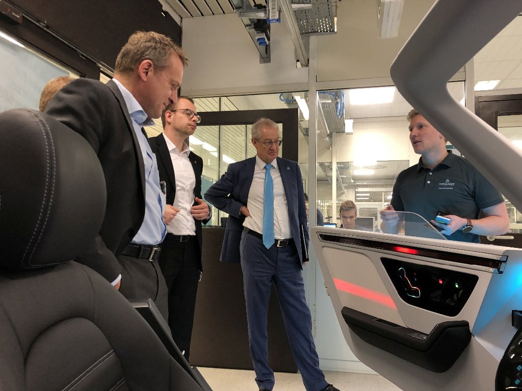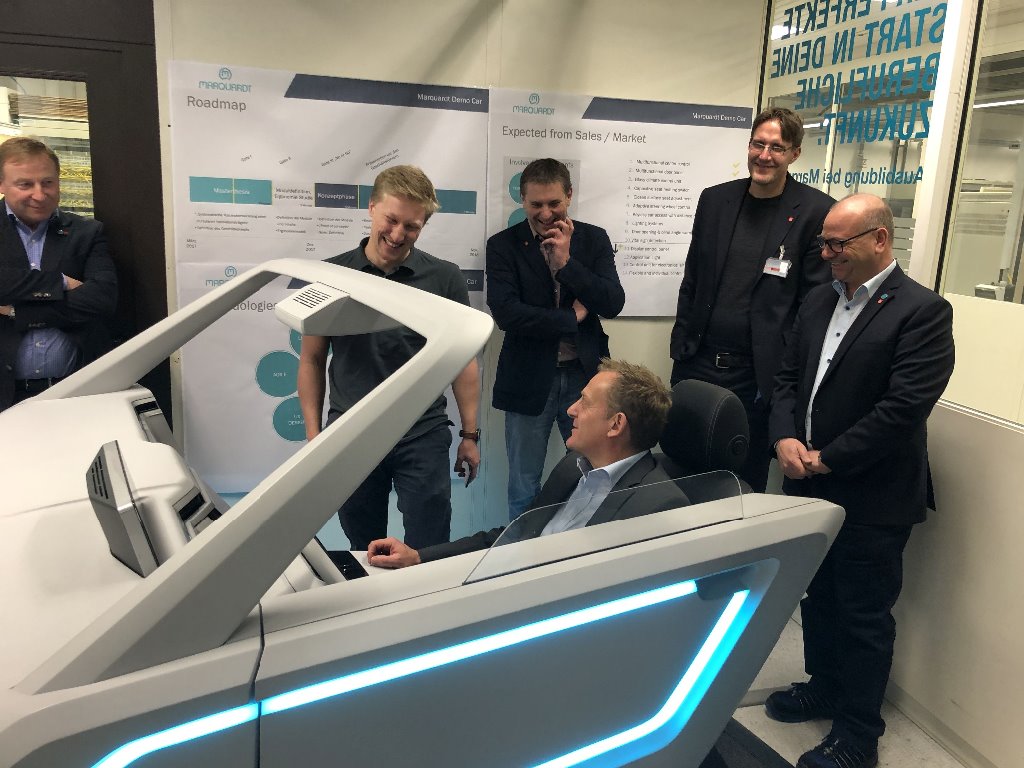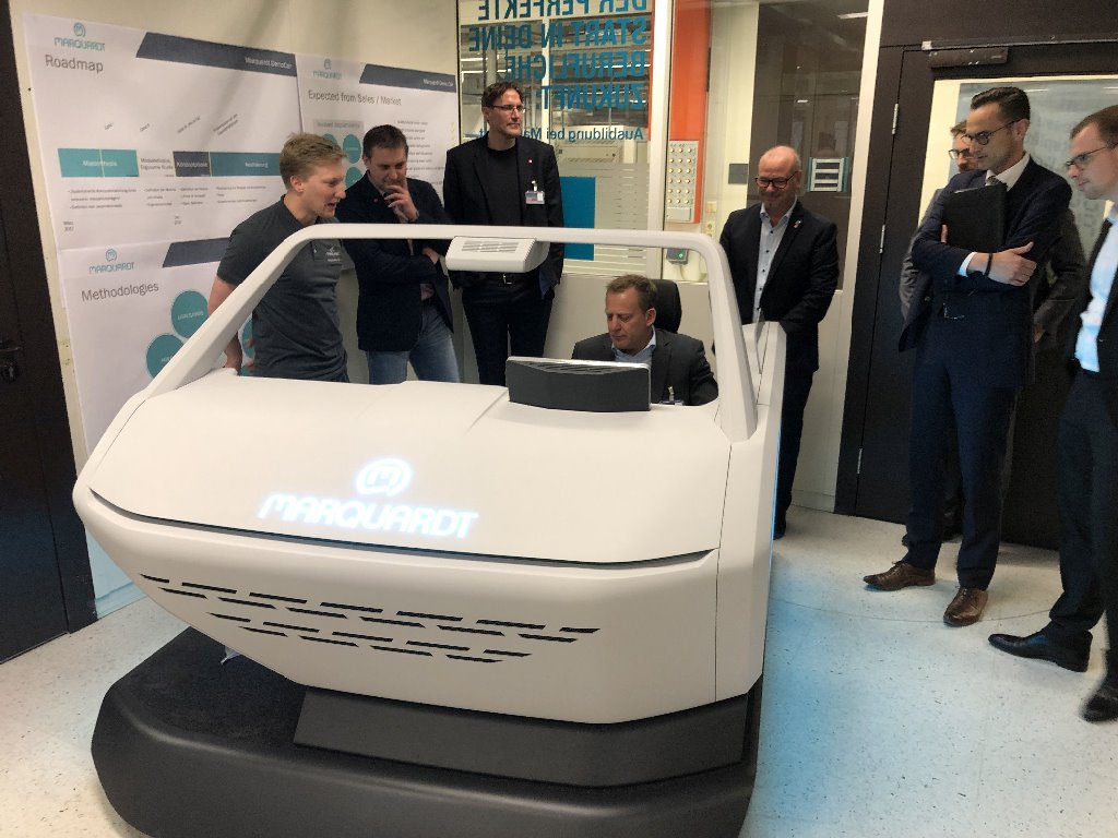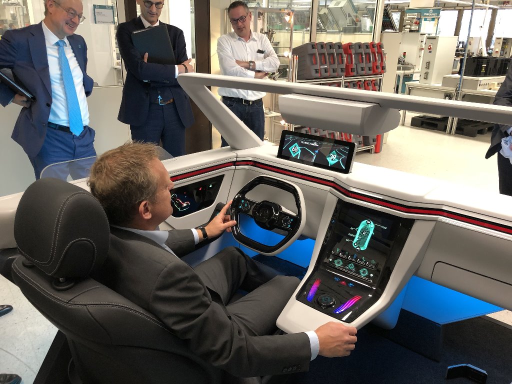 Als erstes wurde das Ausbildungszentrum besichtigt, hier hatte Hr. Zitzelsberger die Möglichkeit in dem Demo-Car der Firma Marquardt Platz zu nehmen und konnte sich über die Zukunft im Inneren des Automobils ein Bild machen.