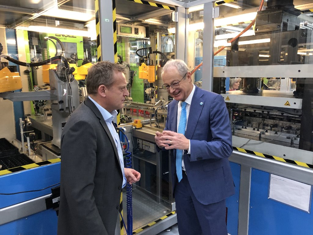 Danach ging es weiter in die Kunststoffspritzerei, den Werkzeugbau und das Montagewerk. Zitzelsberger freute sich über die große Fertigungstiefe bei der Firma Marquardt und den hohen technischen Produktionsstandard am Standort.